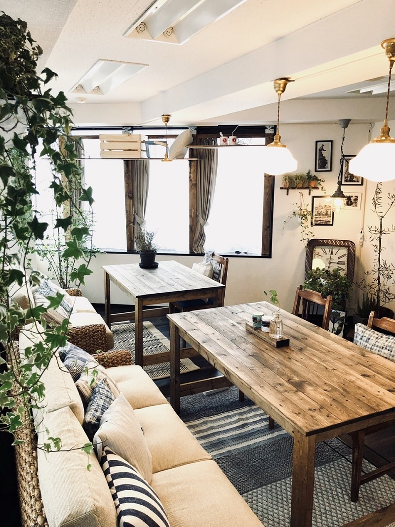 ゆがんだ台形の作りで、レイアウトに苦戦しているスペースをリゾートでくつろぐようなスペースへ。