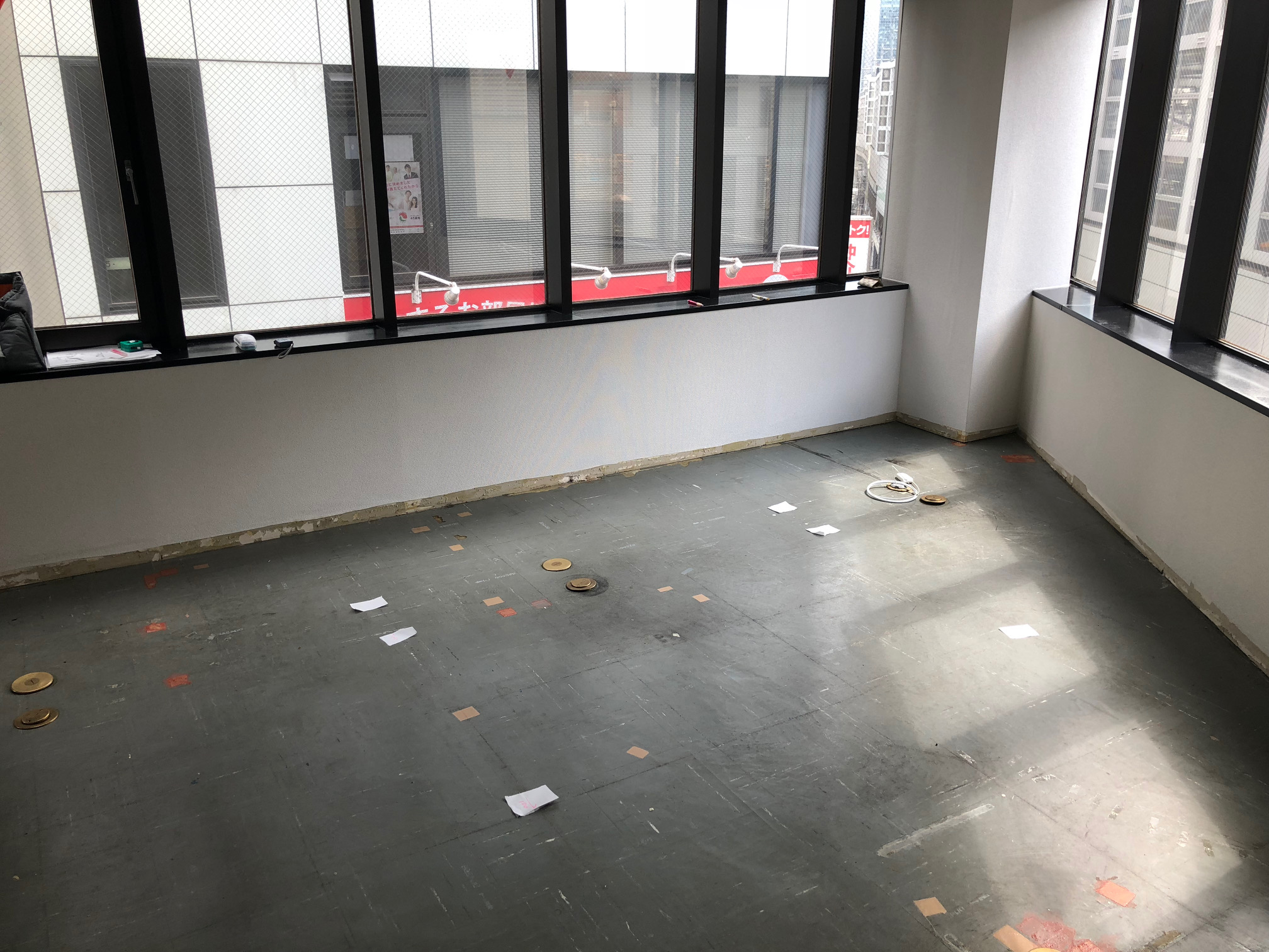 事務感溢れるオフィスを異空間へ。歪んだ台形でレイアウトも難しい空間です。